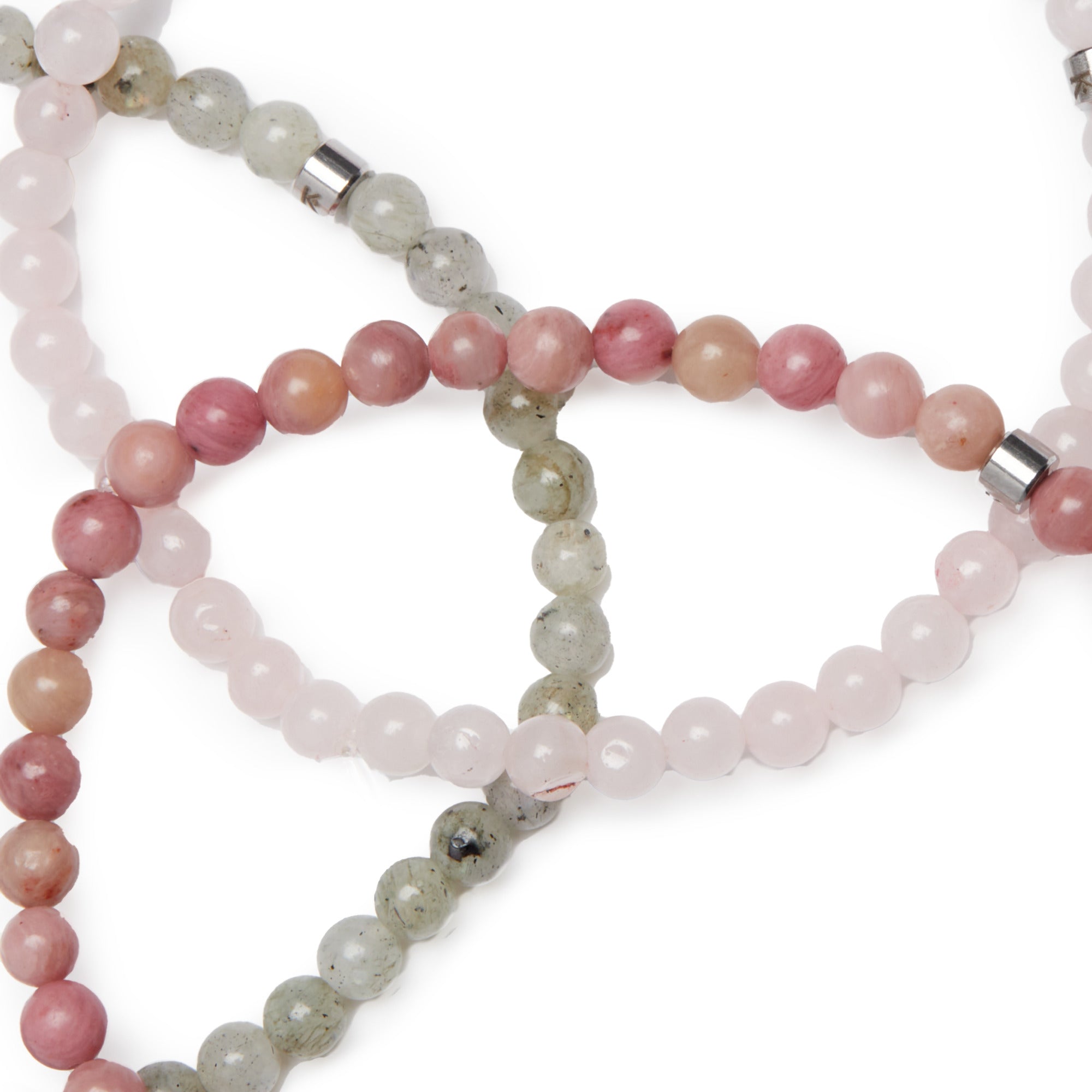 Rose Quartz, Rhodonite and Amazonite work together to restore emotional balance, encourage tenderness towards oneself and promote the expression of the heart.