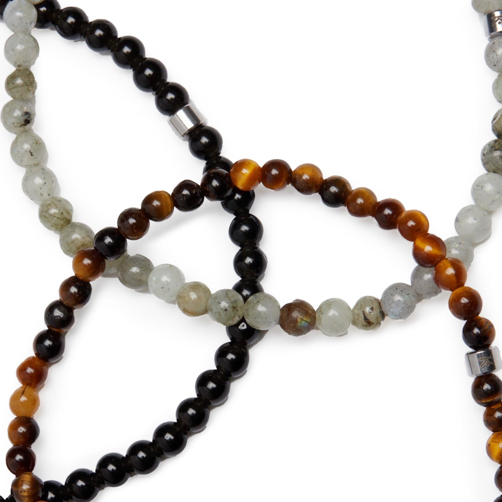 Obsidian, Tiger's Eye and Labradorite form a dynamic protective trio: lucidity, anchoring and absorption of dissonant energies.