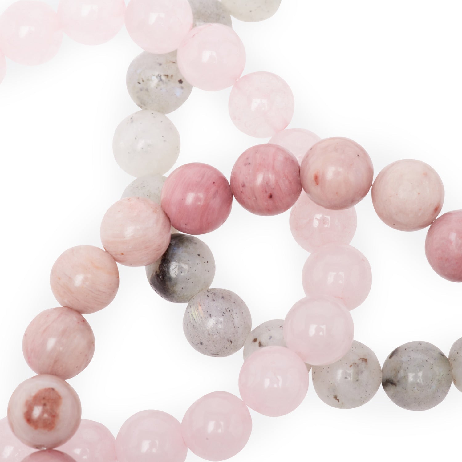 Rose Quartz, Rhodonite and Amazonite soothe wounds, balance emotions and promote heart-aligned communication.